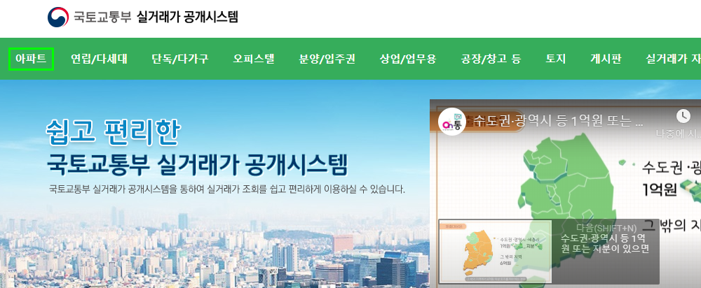 국토교통부 실거래가 공시시스템
