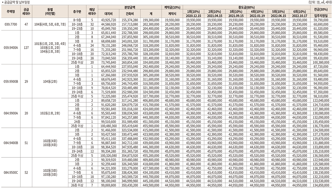 - 분양내역: 39타입 26세대