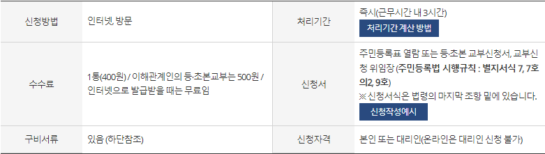 직접 주민센터를 방문하여 주민등록등본을 발급받을 수도 있습니다. 발급 받기 전 미리 신분증을 지참하고 방문하시면 됩니다. 수수료는 400원이 발생됩니다.