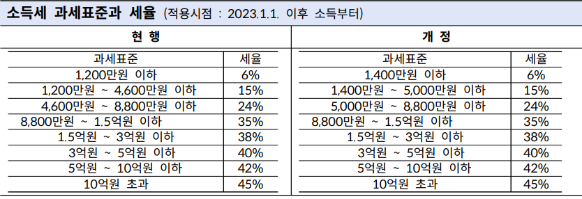 2023년 종합소득세(종소세)의 세율은 아래와 같이 적용됩니다.
