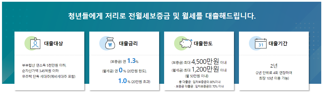 청년전용 보증부 월세대출 대상, 대출금리, 한도 및 기간, 대출자격,