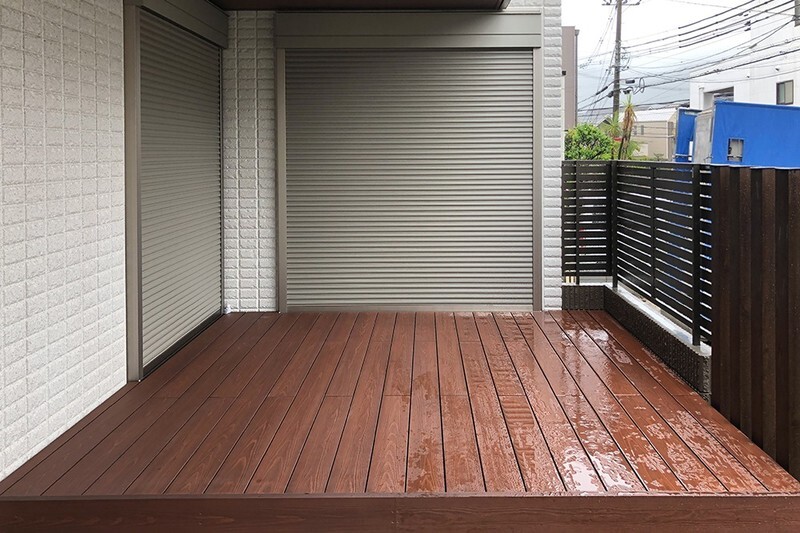 장마는 홋카이도와 오가사와라 제도를 제외한 일본을 비롯해 한반도 남부, 중국 연안, 대만 등 동아시아의 광범위하게 나타나는 기상 현상입니다. 일본에 우드 데크 문화가 서양에서 들어온 당초에는 장마가 큰 장애가 되었다고 합니다. 해외와 마찬가지로 캐나다와 미국 등이 원산의 SPF 재료가 사용되었지만, 다습한 장마에 대응하는 대책이 충분하지 않아, 비로 인해 열화를 빨리 하는 우드 데크를 많이 볼 수 있었습니다.