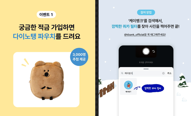 케이뱅크는 다이노탱과 함께하는 이벤트를 진행 중입니다: