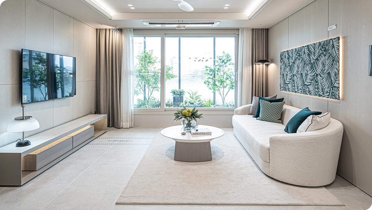 - 남향 위주의 쾌적한 배치: 전 세대를 남향 위주로 배치하여 사계절 내내 풍부한 채광과 통풍을 보장합니다.
