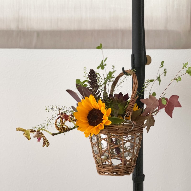 이어서 소개해드릴 제품은 유리 형태에 맞춰 버드나무를 엮은 바구니 타입의 플라워 베이스 'FONTAINE 바구니 엮기 핸들 유리 플라워 베이스 컵'입니다. 핸들이 부착되어 있어 훅 등에 걸어서 사용할 수 있음. 유리와 바구니 부분을 분리할 수 있기 때문에 바구니를 적시지 않고 물을 교체할 수 있습니다.