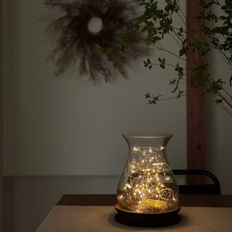 입이 벌어진 큰 플라워 베이스는, 큰 꽃다발을 그대로 살 수 있다. 가지는 대담하게 펼쳐지니까 공간이 있다면 꼭 시도해 봐. 빛의 오브제로도 추천! 플라워 베이스 안에 일루미네이션을 넣으면 빛 오브제 완성! 크리스마스 시즌은 물론, 밤의 방 연출에도 한몫합니다.