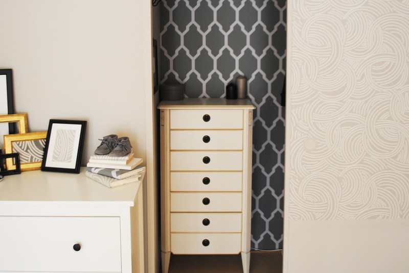 체스트 서랍 속에 깔다. 가장 좋은 것은 바닥이 보이는 액세서리를 수납하고 있는 서랍입니다. 붙이면 기분이 좋아지는 액세서리인데, 분리해버린 후에도 바라만 봐도 기분이 좋아집니다. 액세서리를 매번 제대로 나열하지 않아도 벽지를 깔고 있는 것만으로 '일부러?!'라고 생각될 정도로 세련된 분위기가 됩니다.