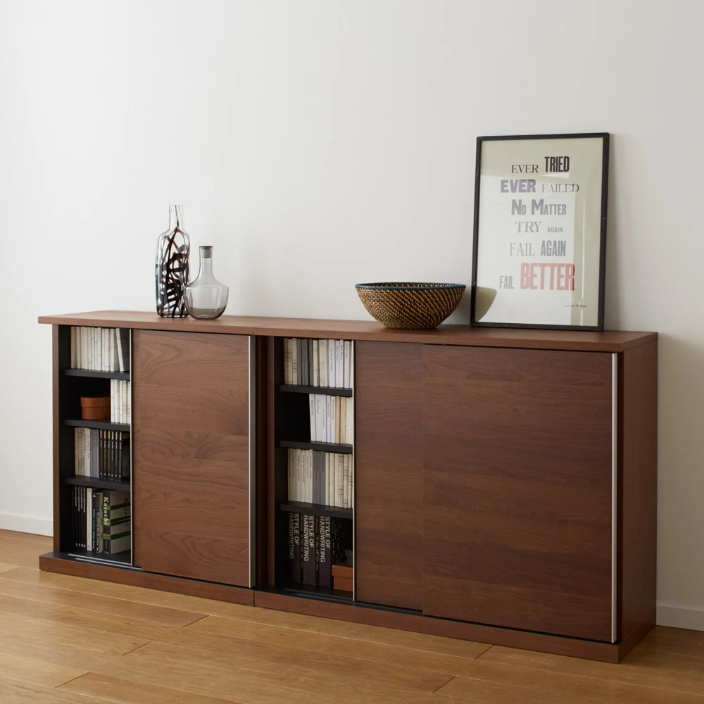잡다한 소품을 숨겨 플랫 하게 공간을 정돈하는 미닫이 타입의 책장. 문고본, 단행본, 만화는 물론, CD/DVD 등의 미디어, 잡화나 소품을 나누어 콤팩트 하게 수납할 수 있는 서랍이 있는 체스트 타입도 추천합니다.