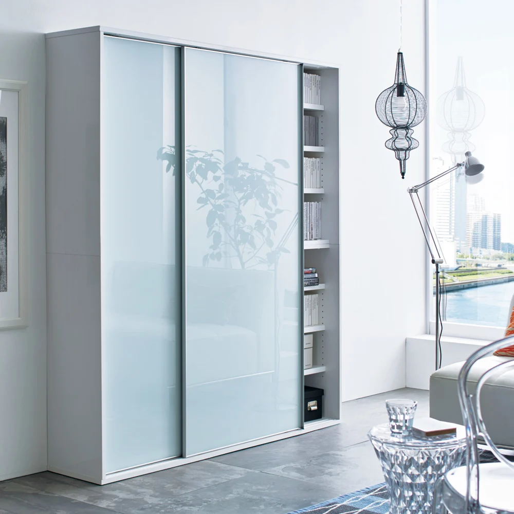 슬라이드 문의 대용량 선반. 심플한 디자인에 더해 공간의 깊이를 압박하지 않고 슬림하게 사용할 수 있는 점도 매력입니다. 2중의 슬라이드 선반으로 수납 능력이 늘어난 타입, 틈새에 설치할 수 있는 타입은 공간을 더욱 유용하게 활용할 수 있습니다.